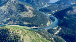 View of the mountains and river near Lake Koocanusa and Libby Dam as seen from the air during one of Yaak Valley Forest Council’s EcoFlights…