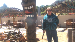 Rio Dejarnette stands next to one of his own carvings named, “tongue twister.” Photo by Moira Blazi , The Montanian. By Moira Blazi …